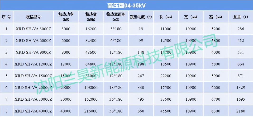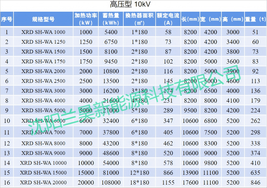 固體電蓄熱產(chǎn)品選型表(V2024)